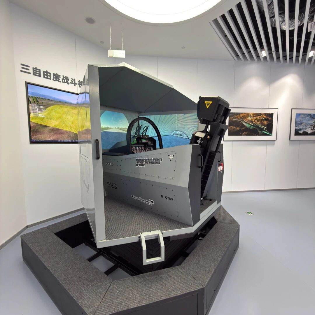 该模拟舱精准复现了现代战斗机座舱环境,不仅配备完整的火控系统,还采用单人单座布局,配合全金属操纵杆与脚舵,以及高度仿真的战斗机仪表系统,再现真实战机的操控体验。三自由度运动平台可精准模拟战机在空中的俯仰、滚转与升降等姿态变化,营造出逼真的空间体验感。操作者可沉浸式体验包括陆基弹射/拦阻着舰、航母甲板起降、超视距雷达锁定与导弹攻击、近距离格斗、精确对地打击、高难度空中加油及多机战术编队等多种现代空战场景。此外,舱外设有外接显示屏,可实时呈现操作者的第三视角画面,便于教学观摩与互动分享,助力体验者深入理解现代空战的战术精髓与高难度操作挑战。
