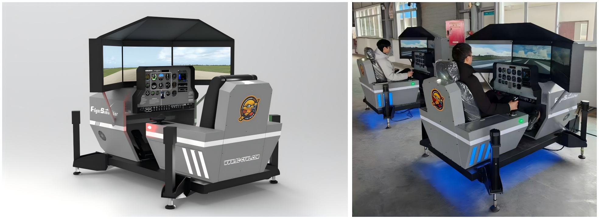 此次交付的设备为未来之鹰航空全新科普级飞行模拟体验舱(全动版)较老款升级了: