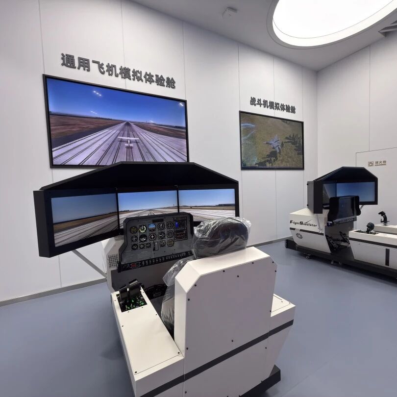此款设备基于世界主流通航飞机研制,为中国航空运动协会认证的模拟飞行训练设备。集成定制飞行控制面板、先进视景系统与机电一体化系统,内置多种情景课程设置功能,支持学员开展重复性仪表操作训练与特情处置演练。广泛用于航空科普教学及模拟飞行体验,是航空科普基地、科技馆及青少年活动中心的优选设备,兼具专业性与高性价比。设备同样支持外接屏幕显示操作者第三视角,方便教学讲解与公开演示。
