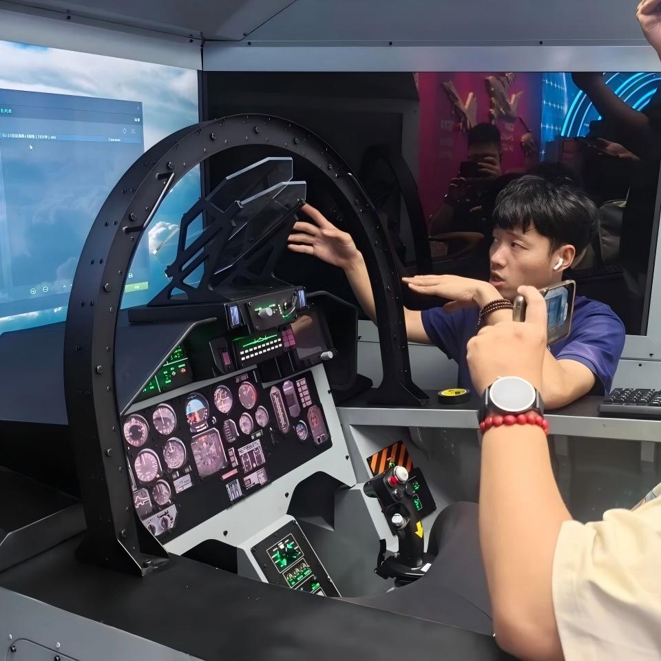 该模拟舱精准复现了现代战斗机座舱环境,不仅配备完整的火控系统,还采用单人单座布局,配合全金属操纵杆与脚舵,以及高度仿真的战斗机仪表系统,再现真实战机的操控体验。三自由度运动平台可精准模拟战机在空中的俯仰、滚转与升降等姿态变化,营造出逼真的空间体验感。操作者可沉浸式体验包括陆基弹射/拦阻着舰、航母甲板起降、超视距雷达锁定与导弹攻击、近距离格斗、精确对地打击、高难度空中加油及多机战术编队等多种现代空战场景。此外,舱外设有外接显示屏,可实时呈现操作者的第三视角画面,便于教学观摩与互动分享,助力体验者深入理解现代空战的战术精髓与高难度操作挑战。