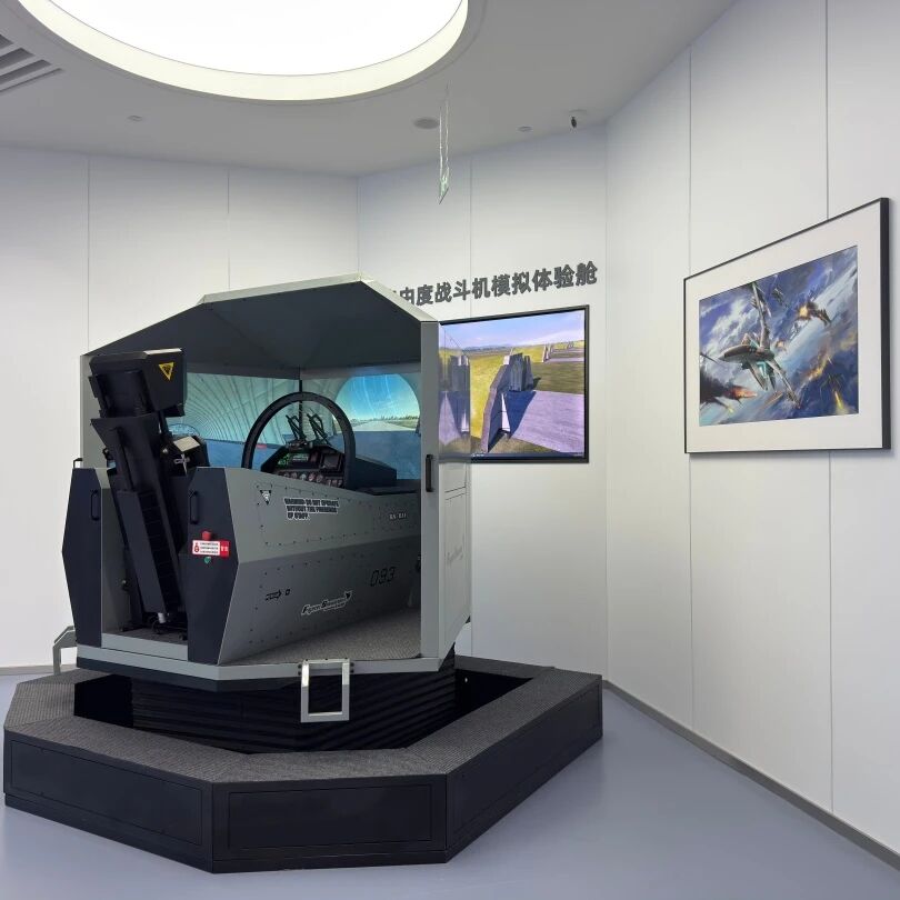 该模拟舱精准复现了现代战斗机座舱环境,不仅配备完整的火控系统,还采用单人单座布局,配合全金属操纵杆与脚舵,以及高度仿真的战斗机仪表系统,再现真实战机的操控体验。三自由度运动平台可精准模拟战机在空中的俯仰、滚转与升降等姿态变化,营造出逼真的空间体验感。操作者可沉浸式体验包括陆基弹射/拦阻着舰、航母甲板起降、超视距雷达锁定与导弹攻击、近距离格斗、精确对地打击、高难度空中加油及多机战术编队等多种现代空战场景。此外,舱外设有外接显示屏,可实时呈现操作者的第三视角画面,便于教学观摩与互动分享,助力体验者深入理解现代空战的战术精髓与高难度操作挑战。
