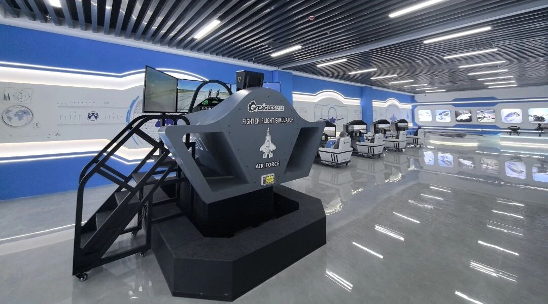 该设备采用先进仿真技术,1:1还原歼-20战斗机气动外形与座舱布局。舱内配备全功能火控系统、高精度飞行仪表、金属质感仿真操纵杆及节流阀,结合三自由度运动平台,高度模拟飞机的飞行运动姿态,包括逼真的爬升俯冲、大角度滚转等,将视觉、体感与操作深度融合,为操作者营造深度沉浸的驾驶体验。 可进行全流程、高拟真度的陆基跑道及模拟航母甲板起降训练,支持编队飞行(密集/疏开队形)、复杂气象条件下的飞行、空中加油对接等关键科目演练。还可深度模拟现代化空战场景,进行超视距空战、近距格斗等战术训练,让使用者身临其境地感受现代尖端战机的独特魅力与强大威力。