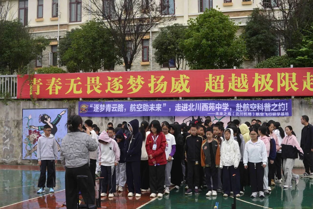 2025年10月23日,未来之鹰(北川机场)航空飞行研学基地走进北川西苑中学,开展“逐梦青云路,航空助未来”为主题的科普入校园活动,为该校师生带来了一场别开生面的航空探秘之旅。